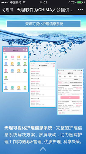 天坦軟件在本次展會(huì)展出天坦可視化護(hù)理信息系統(tǒng)、天坦移動(dòng)醫(yī)生助手、天坦移動(dòng)查房筆等自主主打產(chǎn)品。天坦工作人員在展前做了精心準(zhǔn)備,在展會(huì)上為大家進(jìn)行產(chǎn)品講解和演示,可以生動(dòng)還原產(chǎn)品的使用情景,請(qǐng)大家拭目以待。