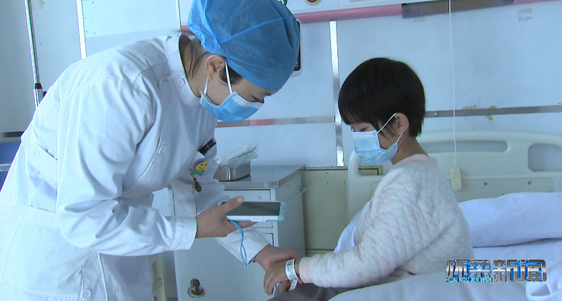 在兒科病房內(nèi),前來換藥的護(hù)士打開床旁照護(hù)系統(tǒng),為小患者挑選喜歡的動畫片,在確認(rèn)患者身份后用手持PDA掃描患者腕帶上的二維碼,識別病例等信息并登記換藥情況。有了床旁照護(hù)系統(tǒng)的動畫轉(zhuǎn)移注意力,小患者不在緊張、害怕,整個換藥過程十分平穩(wěn)、迅速。